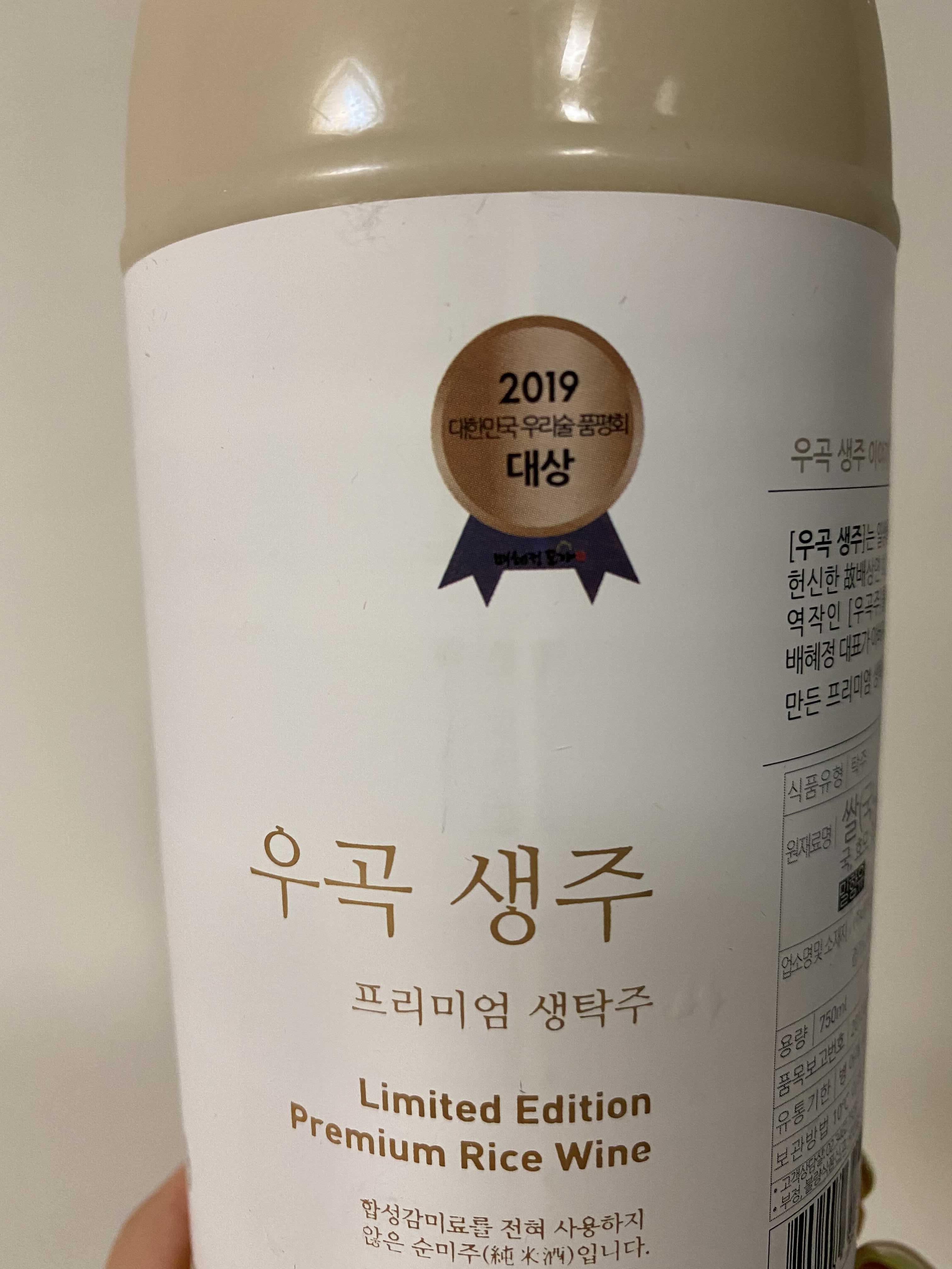 우곡생주 프리미엄 생탁주합성감미료를 전혀 사용하지 않은 순미주 이구요!